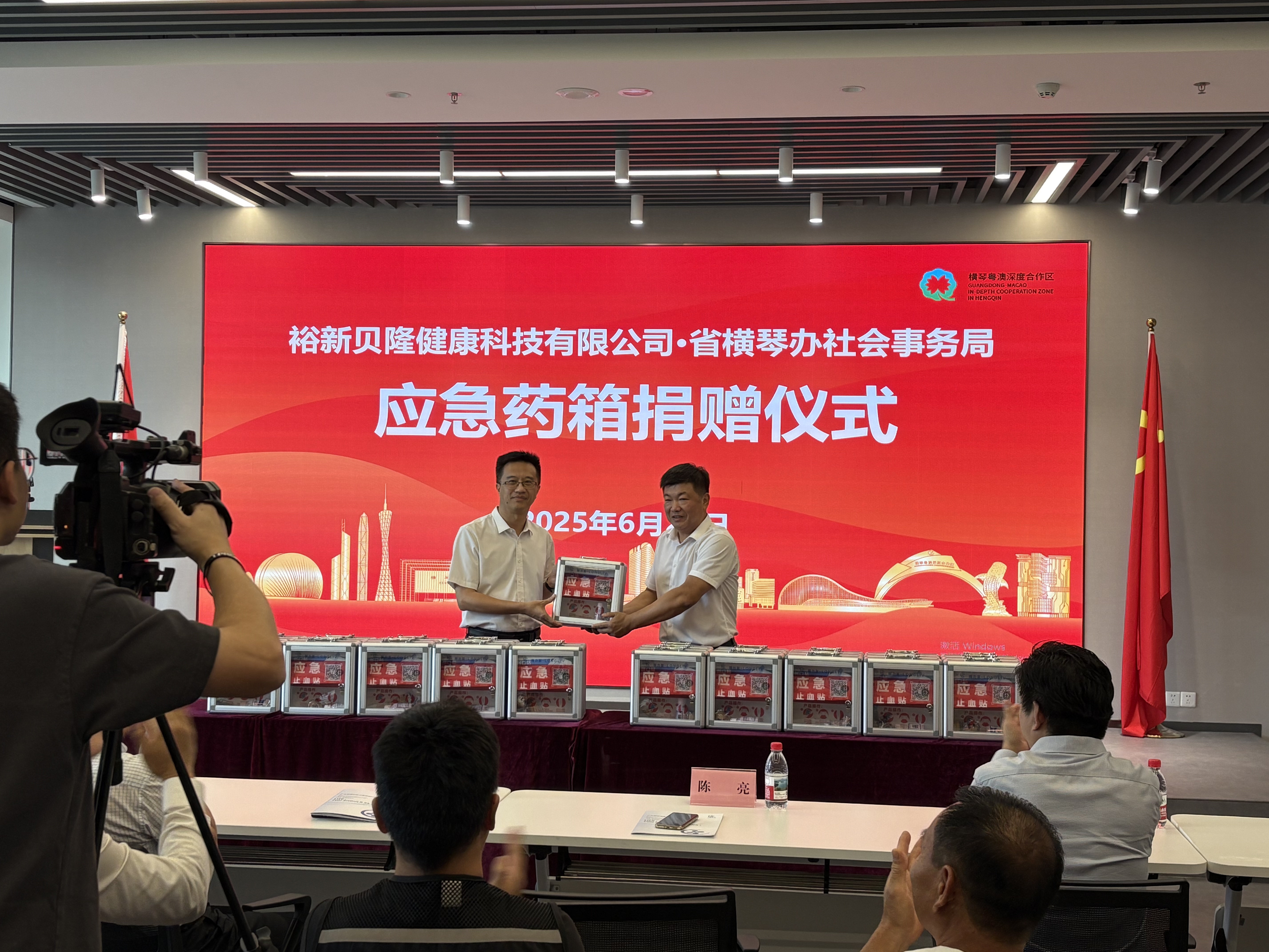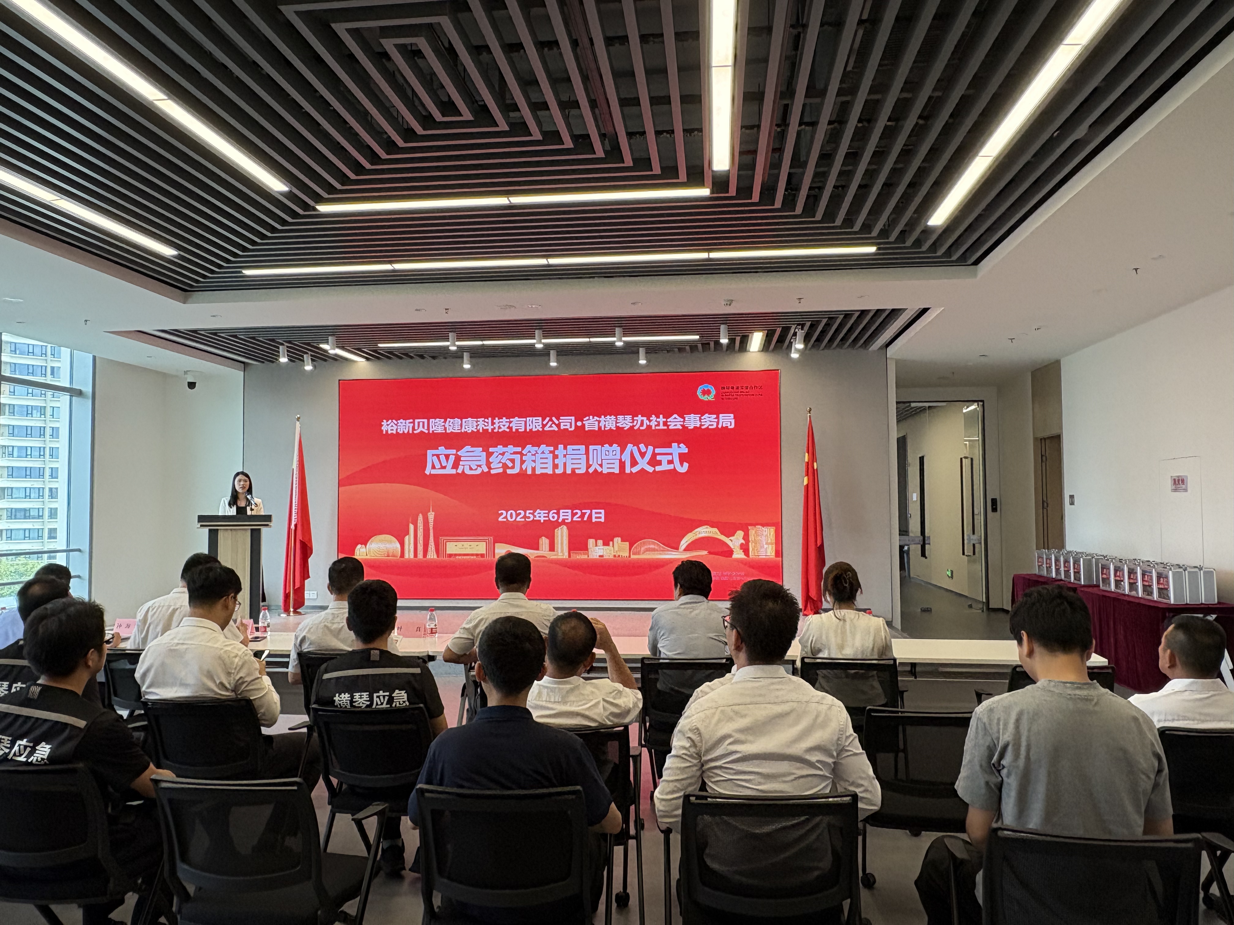 为积极响应政府号召,履行企业社会责任,助力基层应急保障体系建设,2025年6月27日下午,裕新贝隆向横琴粤澳深度合作区社会事务局捐赠一批应急物资,捐赠仪式在横琴莲花社区党群服务中心举行,本次活动由横琴社会事务局主办。
